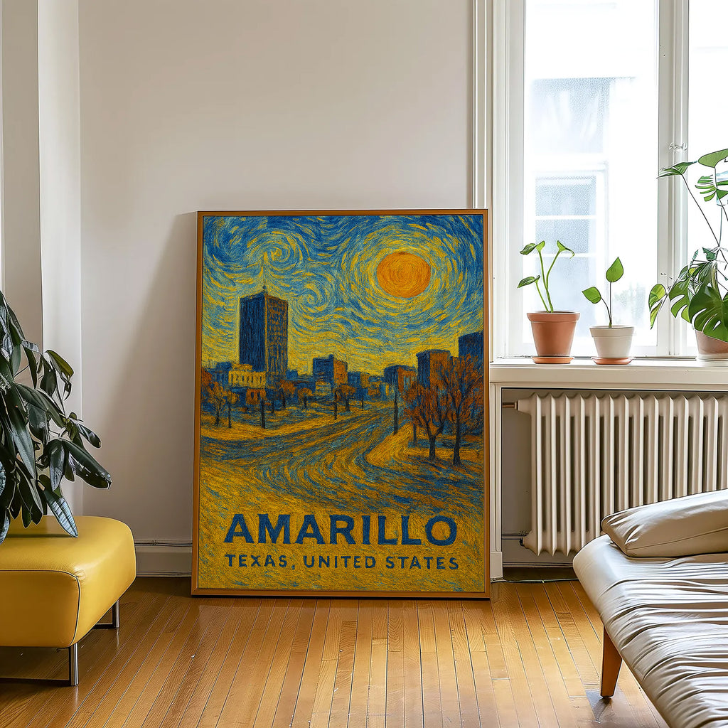 Amarillo Poster Print, Amarillo Travel Poster, Amarillo Van Gogh Style Wall Art, Amarillo, Texas, United States