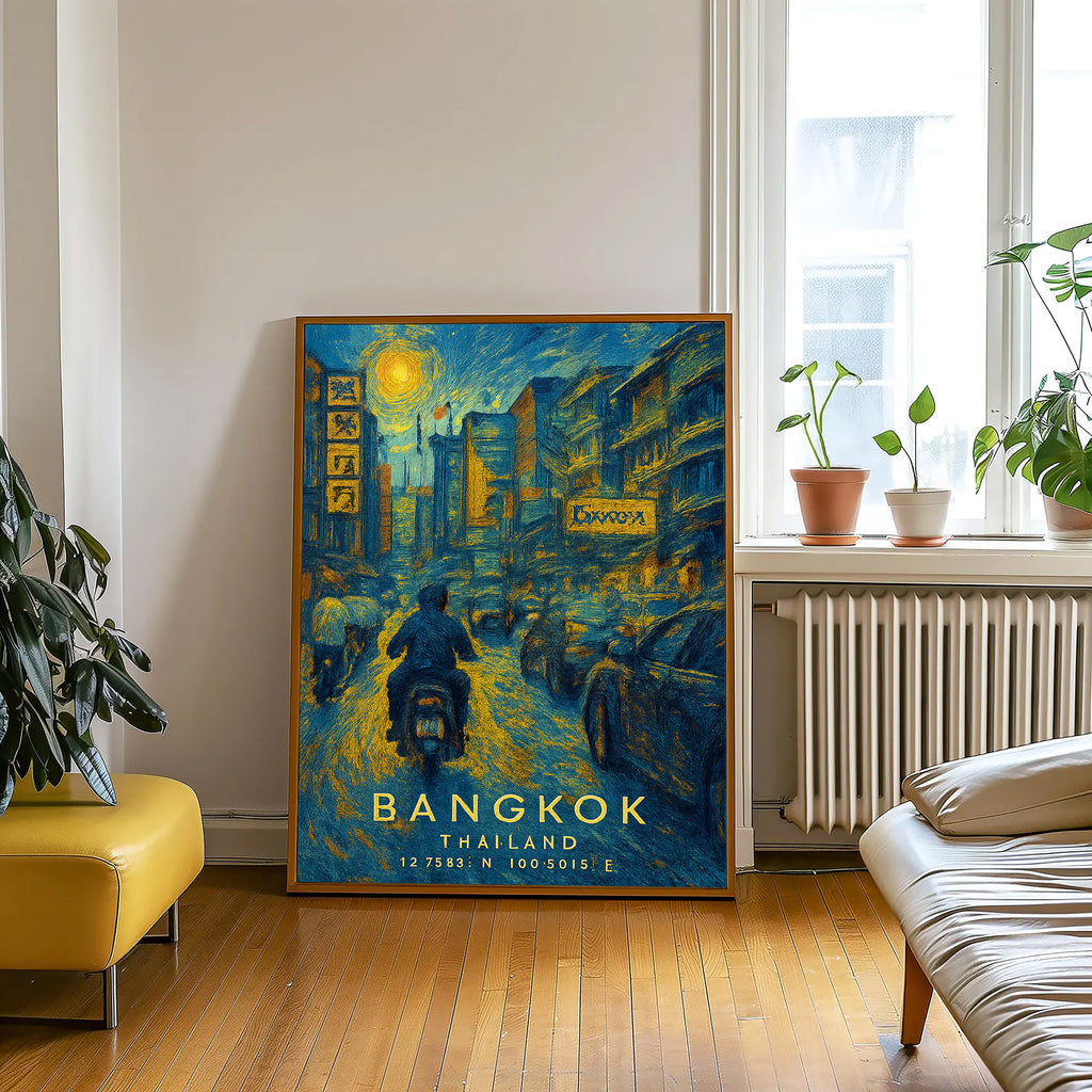 Bangkok Street Travel Print, Bangkok Poster, Unique Wallart Decor, Bangkok Temples, Bangkok Black and White Coordinates Home Decor, Thailand