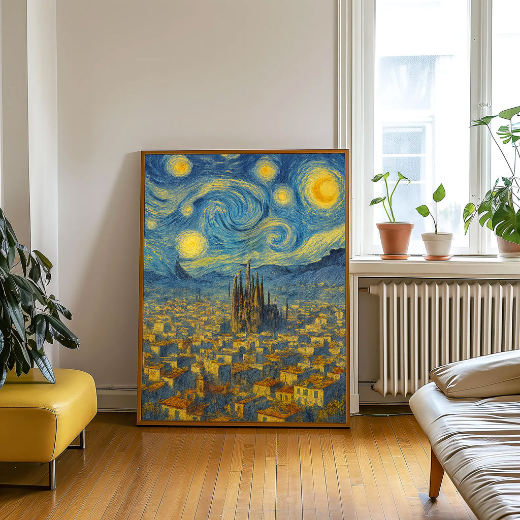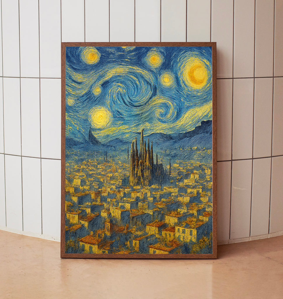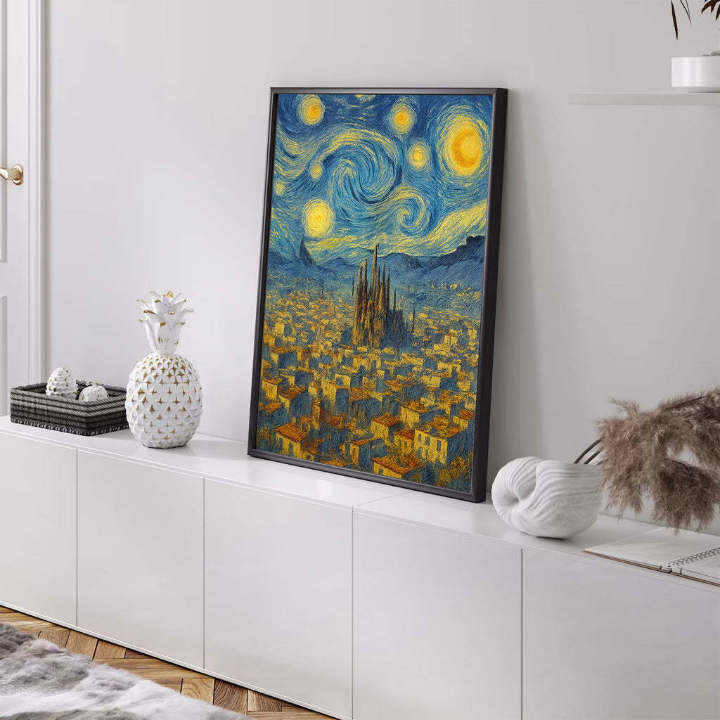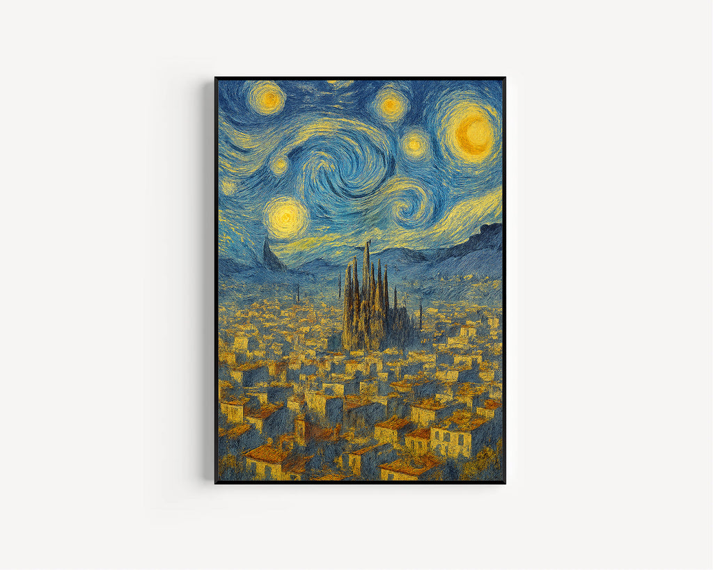 Barcelona Skyline Travel Print, Barcelona Poster, Unique Wallart Decor, Sagrada Familia, Barcelona Black and White Coordinates Home Decor