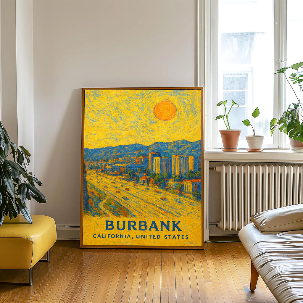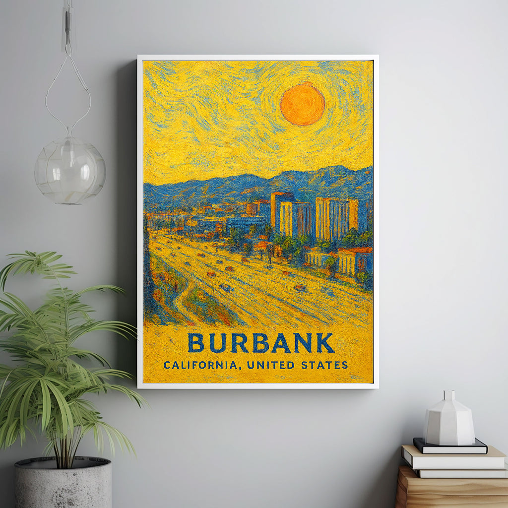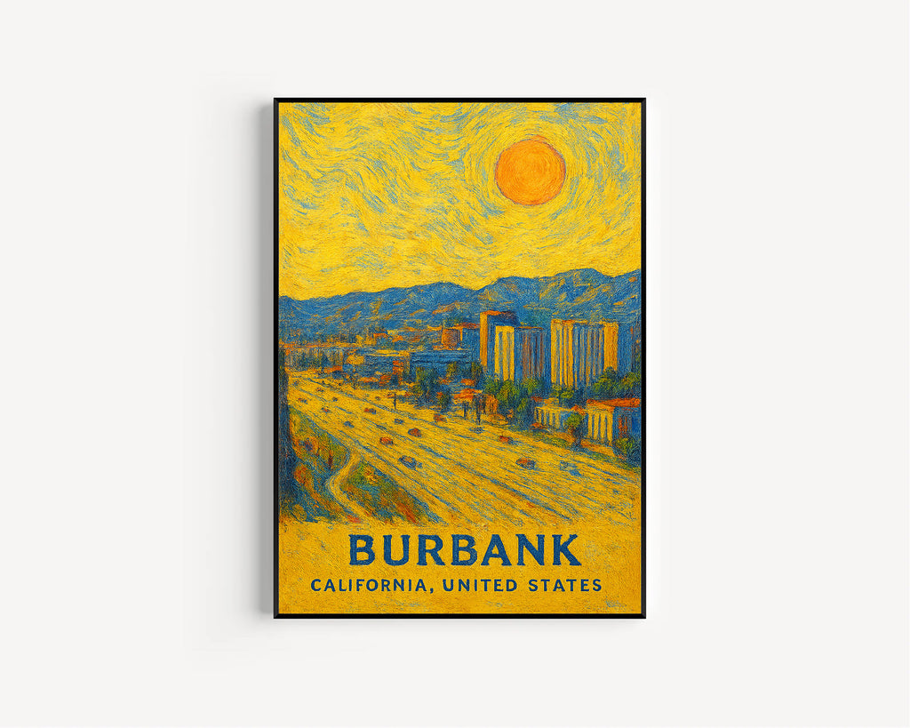 Burbank Poster Print, Burbank Travel Poster, Burbank Van Gogh Style Wall Art, Burbank, California, United States