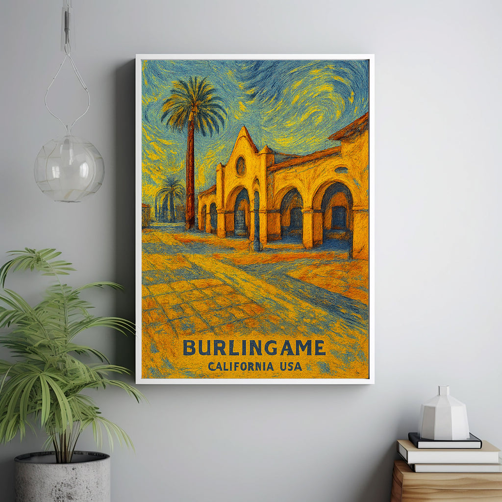 Burlingame Print, Burlingame Photo Poster, Burlingame Travel Wall Art, Burlingame Map Print, Burlingame Van Gogh Style Print, California, USA