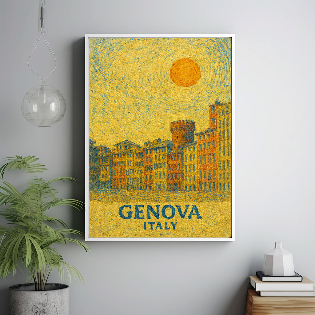 Genova Poster Print, Genova Travel Poster, Genova Van Gogh Style Wall Art, Genova, Italy