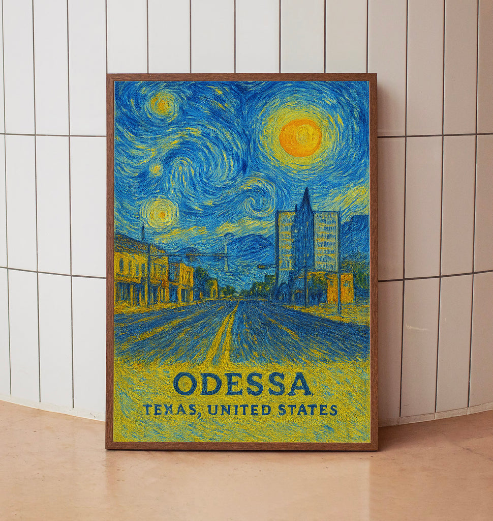 Odessa Poster Print, Odessa Travel Poster, Odessa Van Gogh Style Wall Art, Odessa, Texas, United States